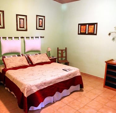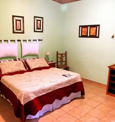 Es una verdadera estancia de campo arreglada para aprovechar el turismo rural. Por ende no tiene lujos, pero sí todo lo necesario. La atención de todos es muy cálida y cordial, la comida buena, las habitaciones limpias y con todo lo necesario. Enorme y bello parque. Precios razonables. Aceptan mascotas. Altamente recomendable. Los felicito.
